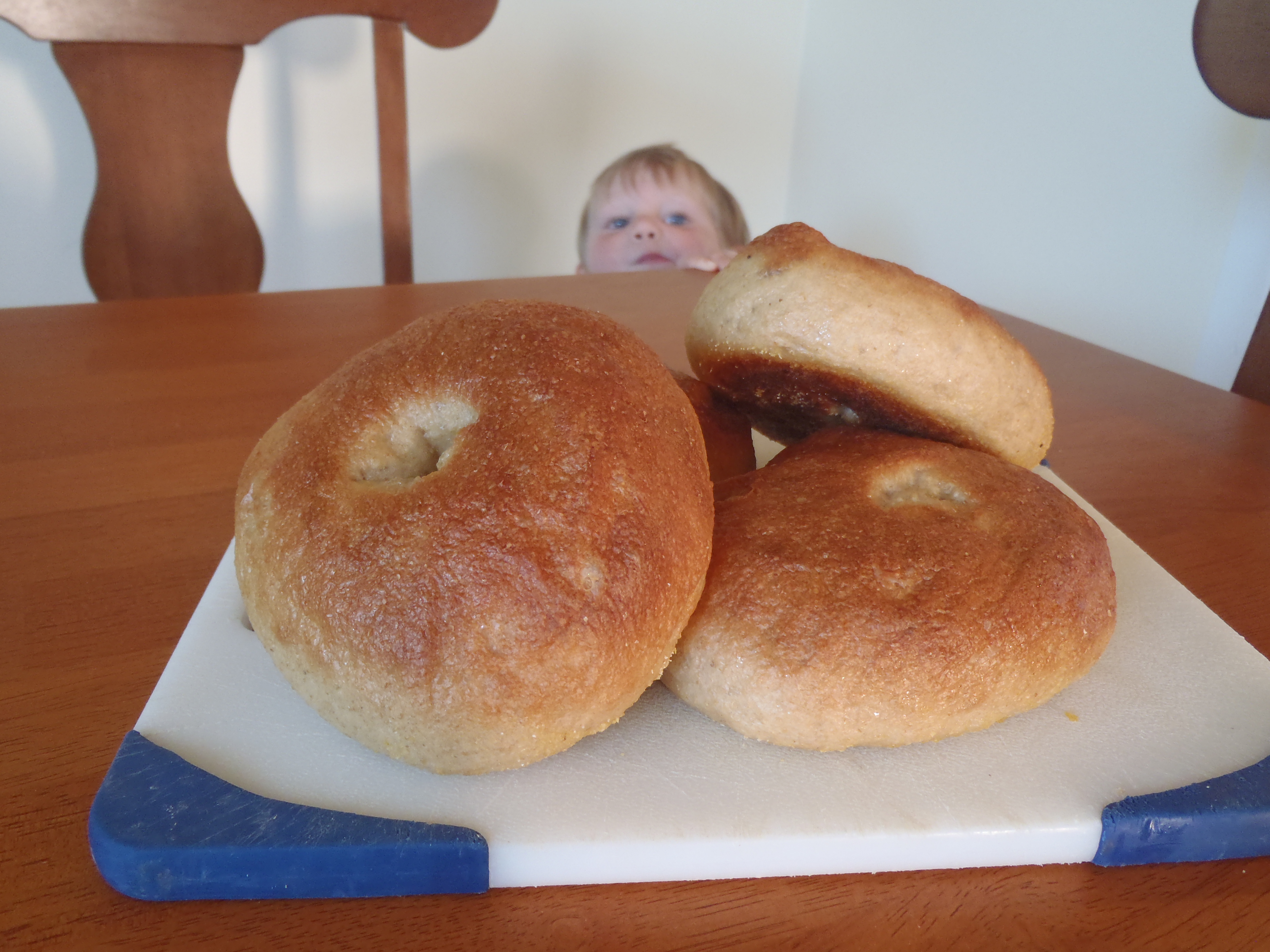 1. YAY! for personal belongings arriving – it’ll obviously feel more like home now. I love to see those blossoms on the trees (I’m sure you do too). The bagels look delicious and the whole picture is precious with your little man peeking over the table edge at his momma’s yummy baking success.