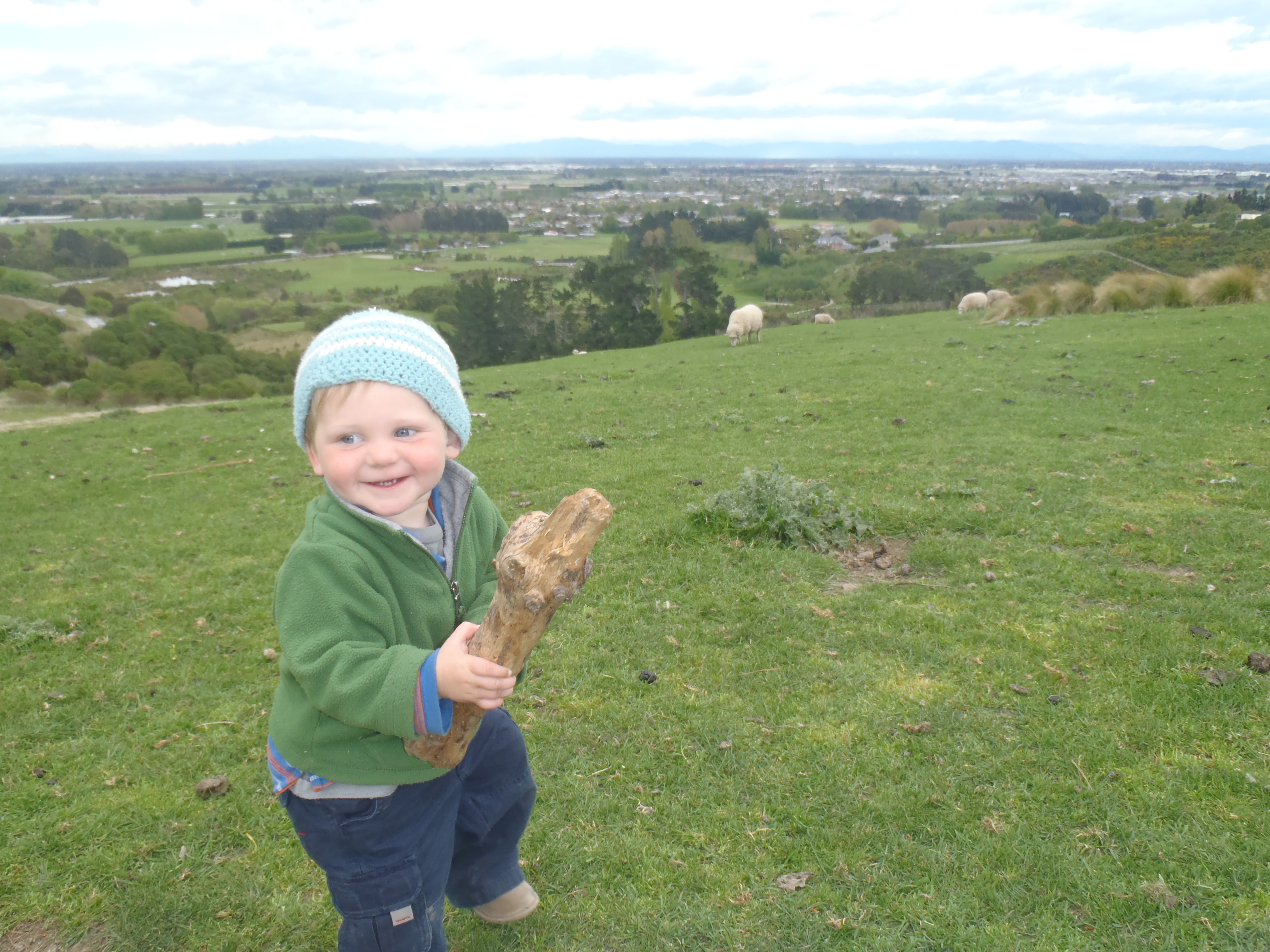 Milo and Mama went on a walk on Friday to the old Halswell Quarry where much of the stone of the famous Christchurch buildings (fallen down since the 2011 quakes) was mined. The track wandered up through a sheep pasture where Milo got to practice his Bahhing. Not sure what his plan was for that stick, but at least it did not get near a sheep.