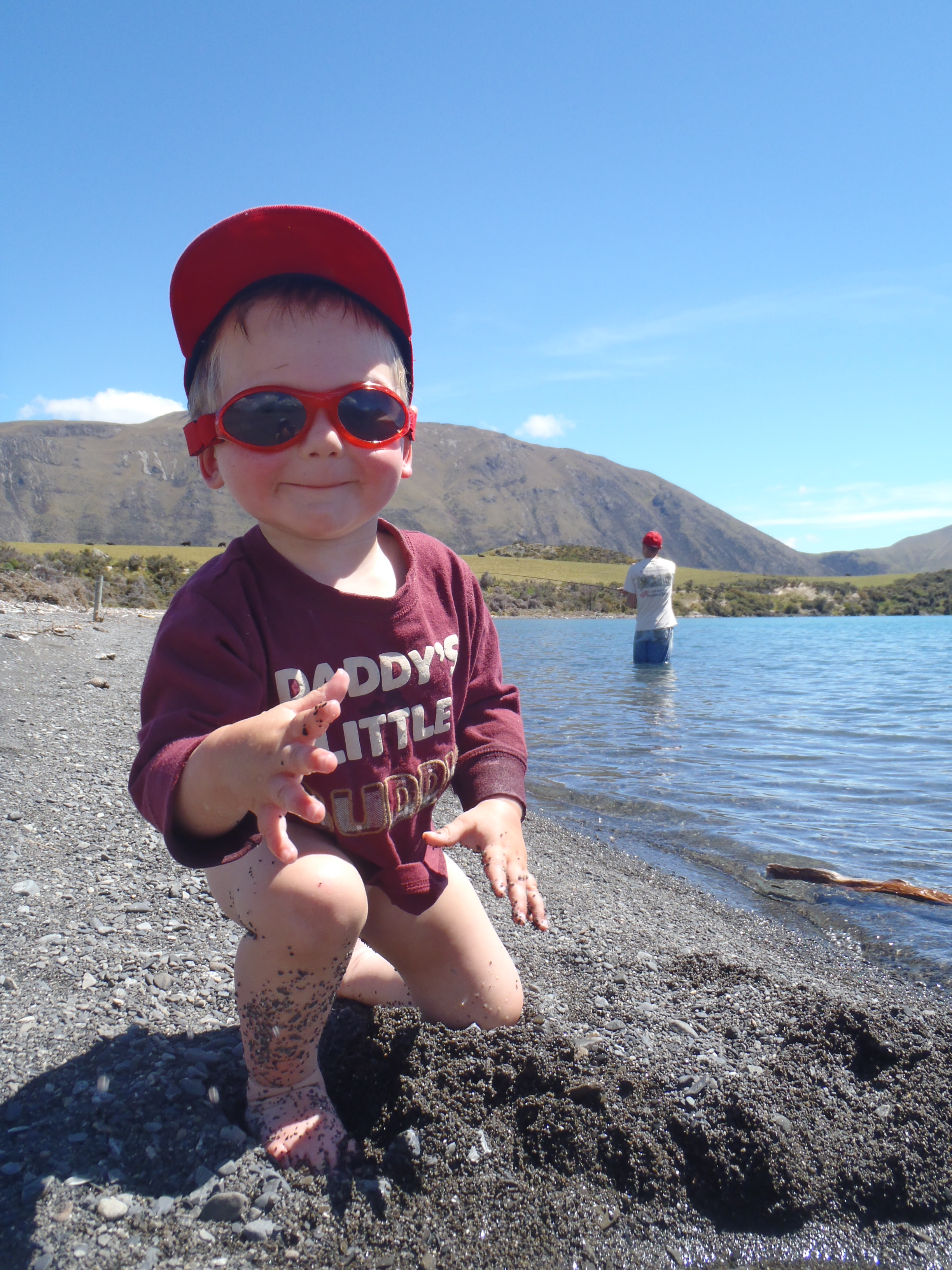 Jeremiah fishing Published December 10, 2012 at 2448 × 3264 in Plan C, Lake Coleridge Milo spent the day as “Daddy’s Little Buddy,” happily playing in the sand while Jeremiah fished in the lake, sporting his new Cornell hat from Abi and Omi and his snazzy red sunglasses.