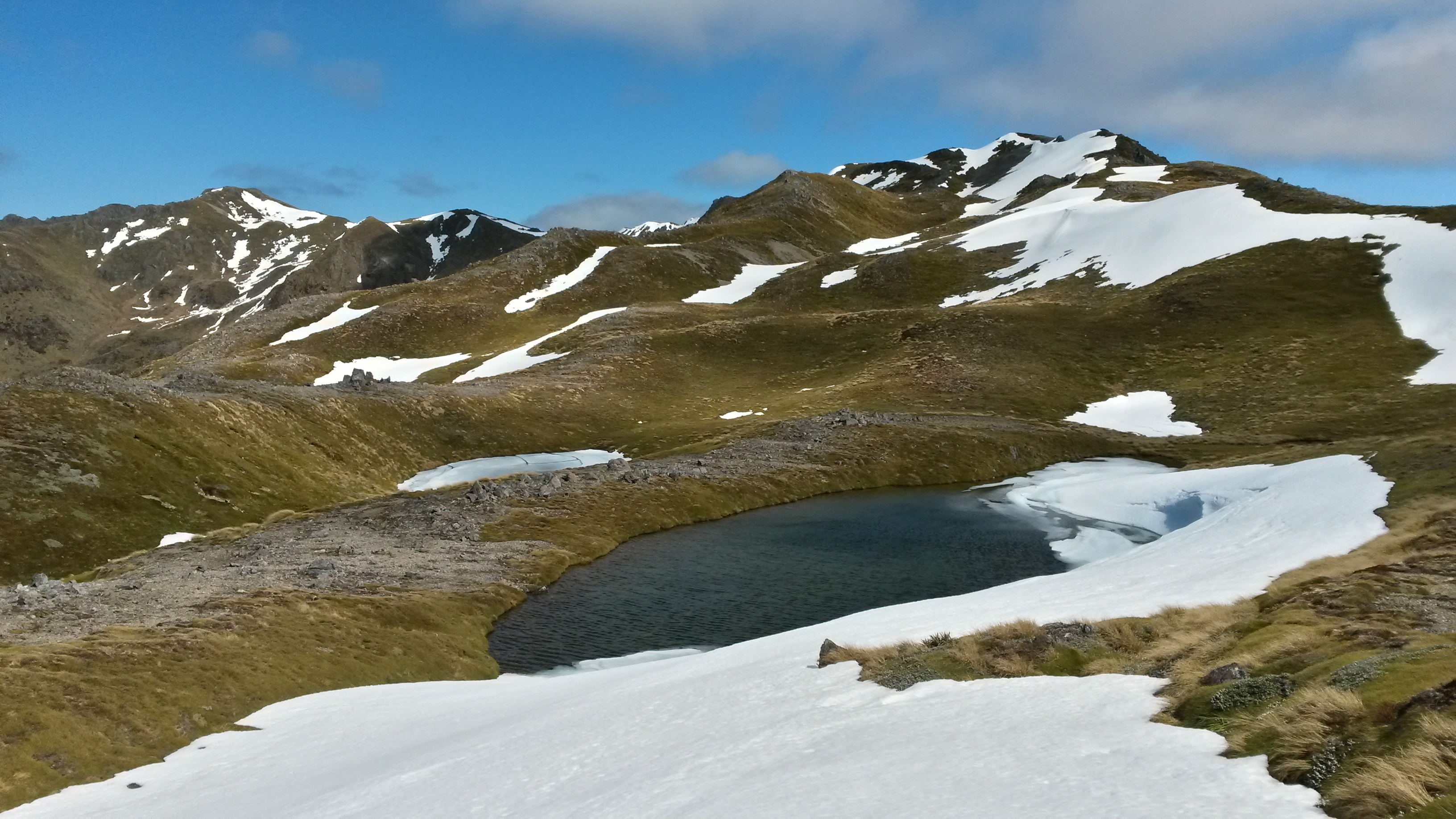 If you squint you might just be able to see the tiny hut in the saddle. DOC calls it a “bivouac;” everyone else calls it a “biv” (three syllable words are too long for Kiwis). That’s where I planned to stay the night.