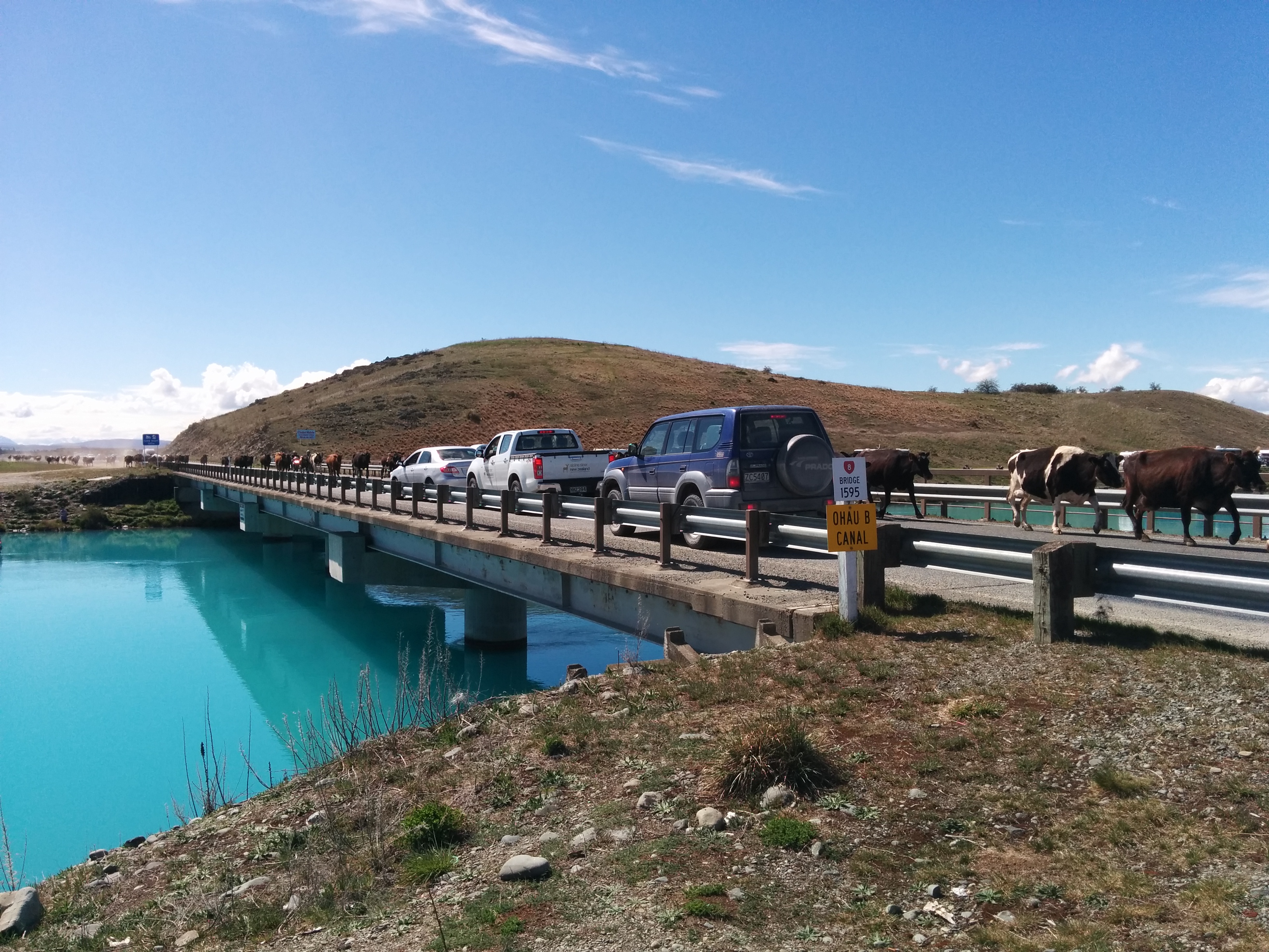 cattle-on-bridge Published October 5, 2016 at 3264 × 2448 in Dude weekend To round off the weekend, here’s a quintessential Kiwi scene. Cattle stopping traffic on the state highway.