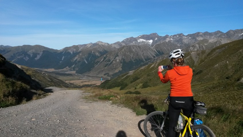 The track starts with a climb up a four-wheel-drive road to Maling pass. The forecast had been for showers, clearing during the morning, so we rugged up and brought our hats and puffies and changes of clothes in our backpacks….but the day turned out fine. “Blue skies and never a cloud, the sun dancing on the water.”