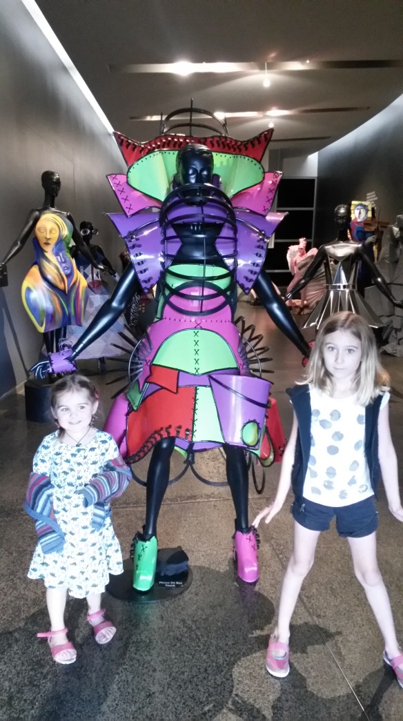 Here are Audrey and Naomi posing next to a dress made out of plastic buckets. The kind of bucket that can be purchased at the Warehouse for $1. Did I mention how much I LOVE the wearable arts show?