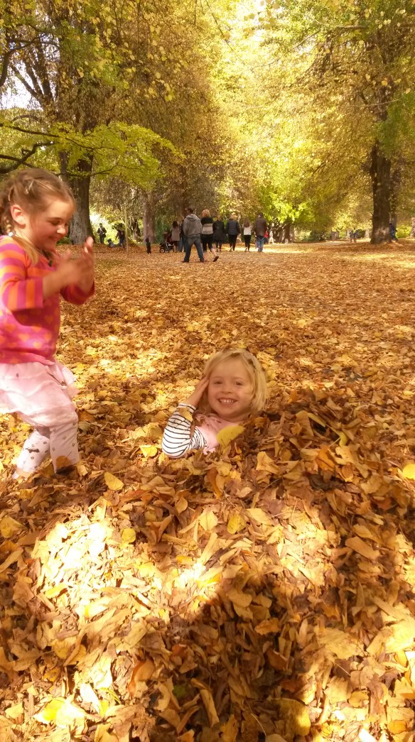 This was our Hagley Park day, with friend Stella (and her little sister Nina). The leaves were perfect, sun dappled and dry.  The girls hatched out of their egg nest repeatedly.