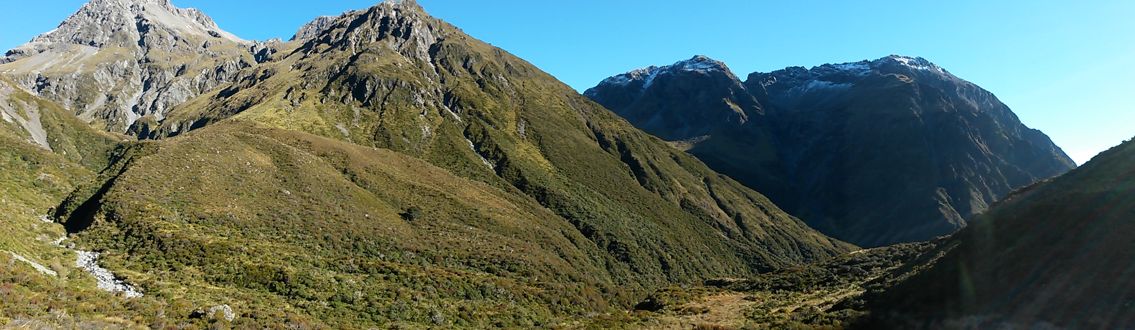 20170506_104834 Published May 7, 2017 at 2256 × 656 in Alpine again: Hawdon to Edwards It was frosty in the shadow of the mountain when we turned up to the alpine meadow this time, and we waited until rounding the next bend and reaching the sun