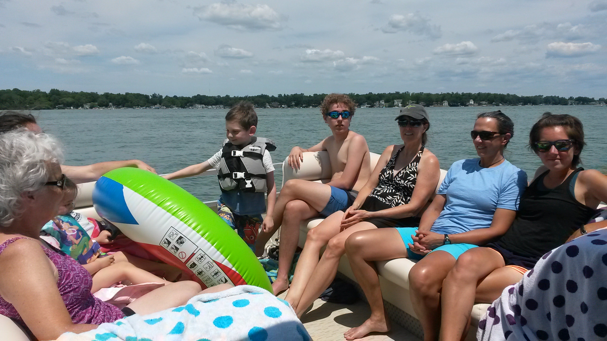 20170709_131844 Published August 8, 2017 at 2048 × 1152 in Michigan lake Lounging on the boat! There’s Milo, cousin Duncan, Aunt Gretchen, Dara (Aunt Susanna’s partner), and Aunt Susanna.