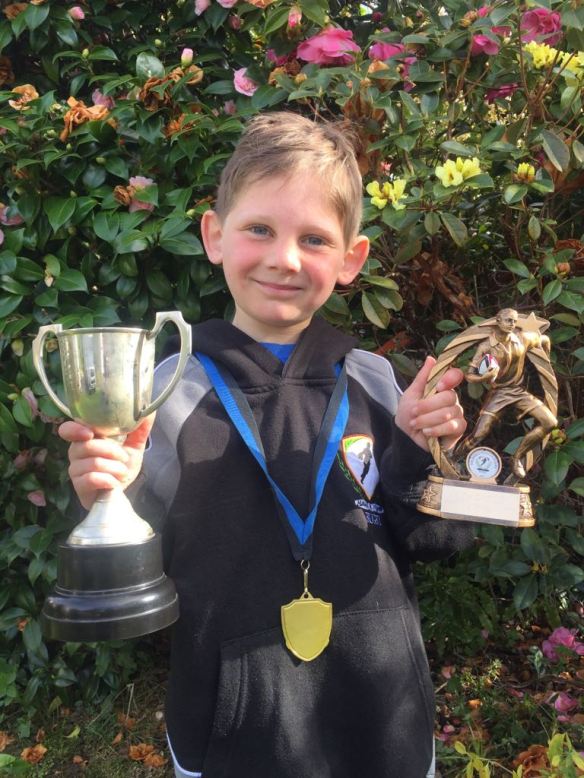 Milo won the rugby player of the year award for his team, and boy, is he proud. I’m proud of him too. Like I’ve said before, it’s neat to see your kid do something he’s passionate about, and do it well. I’m going to give him a chance at soccer though, since with his genes (well, my short genes which he has inherited), he might not have as much fun with rugby when the tacklers get bigger.