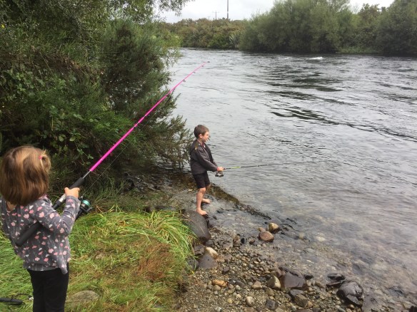 The kids plunked their lines in the water and got some imaginary nibbles. They’re addicts in the making.