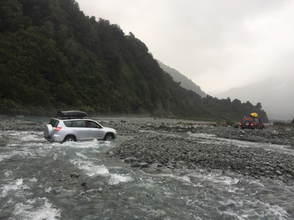 The husbands both like four-wheel driving. Our Rav4 isn’t a “real” four wheel drive–no snorkel, not super high off the ground, no super-low gear….but it did ok on this trip into Dillon hut along the Taipo river. Jeremiah was grinning.  I was tense.  Pretty typical, I guess.