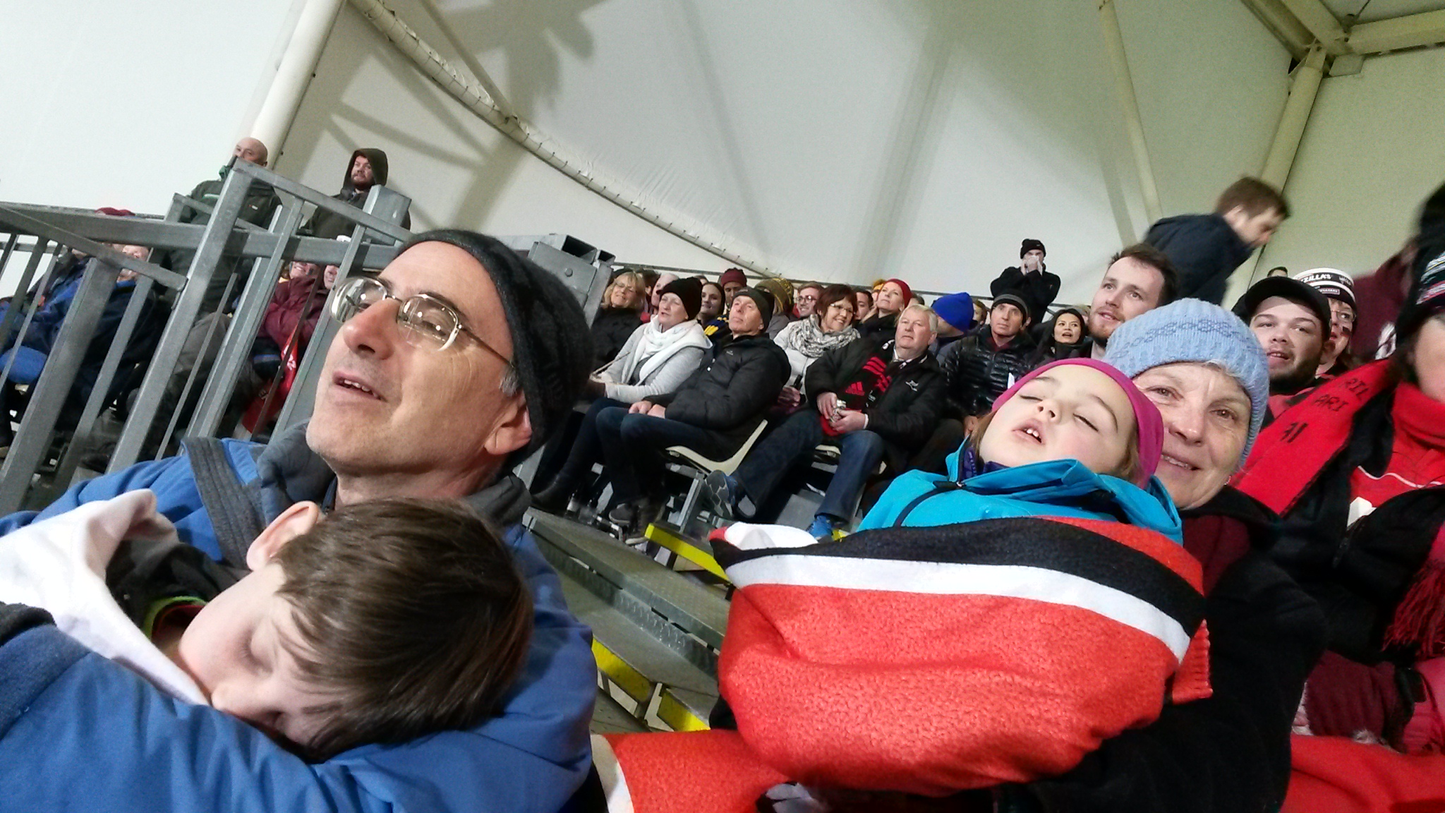 We took them to a Crusaders rugby game, only to have their hosts fall fast asleep on their laps! We had parked blocks and blocks away, and as the crowd tromped down the bleachers and my too-big-to-carry children snored away on their grand’s laps, my Dad looked up at me. “I don’t know what we’re going to do,” he stated, in some consternation, as I wondered if Uber drivers would pick up the cargo from the stands. In the end Milo woke up enough to walk, and by the time we reached the car even Naomi was chirping away on my back completely capable of moving her own legs ( though opting not to do so).