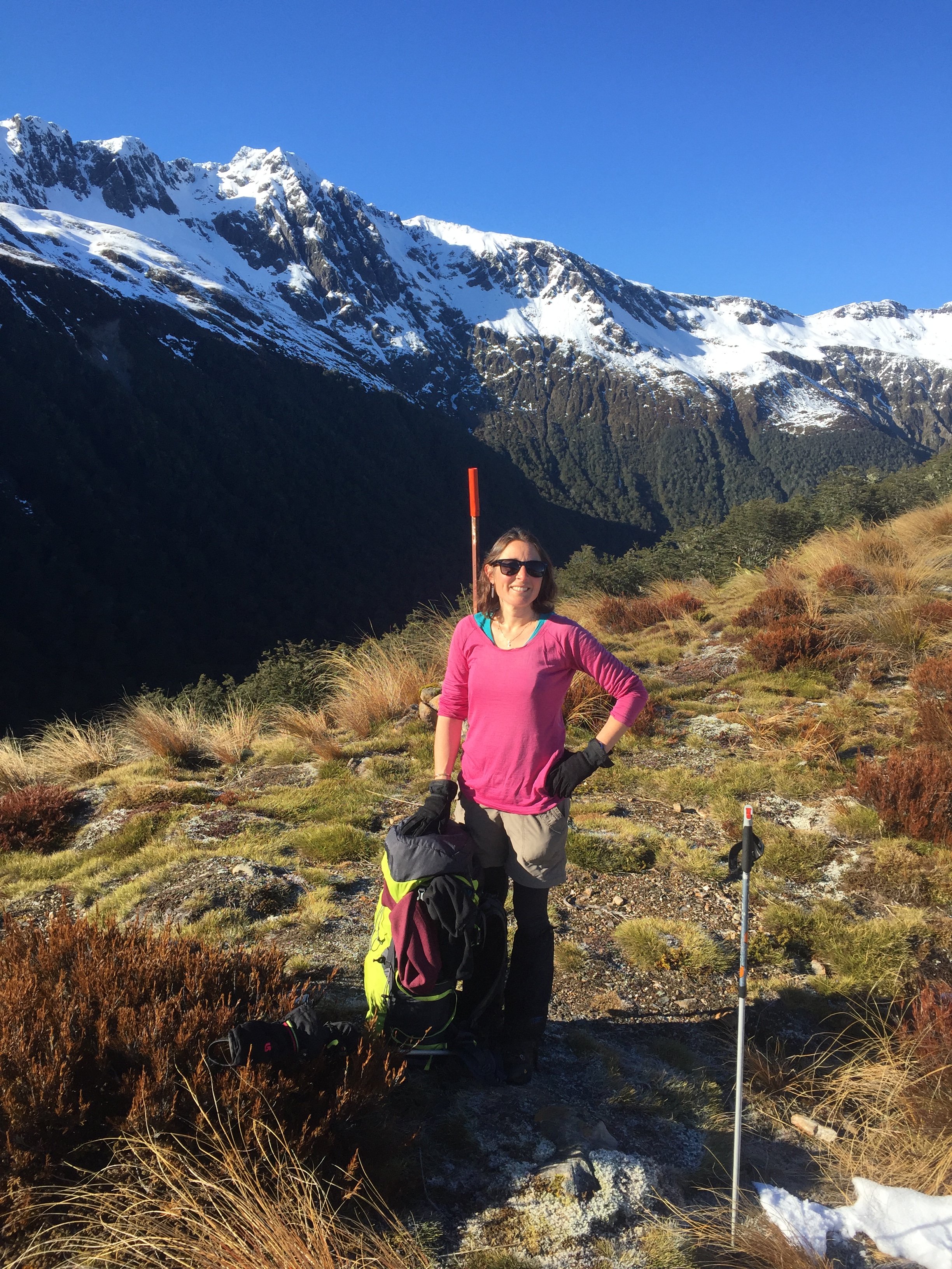 IMG_0480 Published September 9, 2018 at 2448 × 3264 in Snowshoe excursion We left our snowshoes at this pole just where the snow abruptly ended; no need to carry them down to the hut and back up again the next morning.