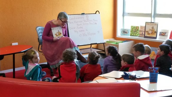 Here is the New Entrant classroom at Halswell school. Tuesdays are new kid visit days, so the parents of all the soon-to-be-starting kids are present as well.