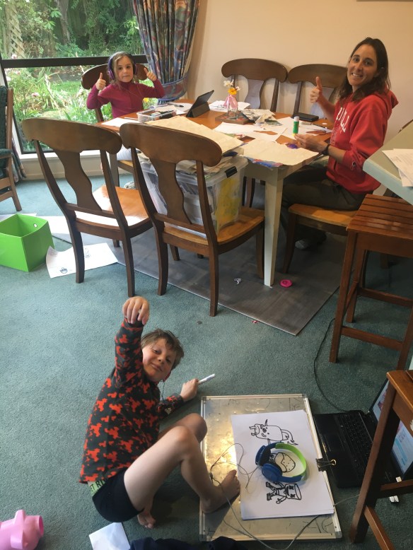 The afternoon proceeded remarkably peacefully, with Milo practicing his touch-typing, Naomi doing “how to draw’s” on you-tube, Jeremiah working away at a savory stew which is now bubbling pleasantly on the stove, and me going deep into a collage to illustrate “snow day” while listening to podcasts. It felt rather like a snow day, all in all.