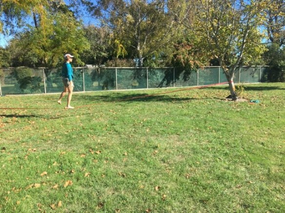 We went over to the local domain and strung up my slack line between two trees, even brought over my speaker and played cool music.