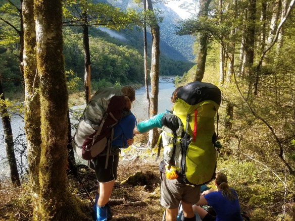 The other three girls spent a leisurely morning at the hut (Bruce is the colorful hut warden) and set off not 30 minutes before us….still, we didn’t catch them until lunch time.