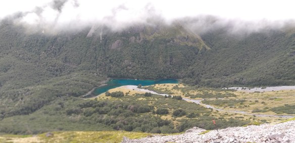 Blue lake is just below; we’re climbing the earthquake dam. It made me wonder what will happen up there next time the Southern Alps fault slips. I hope NOT to be staying at the hut that day.