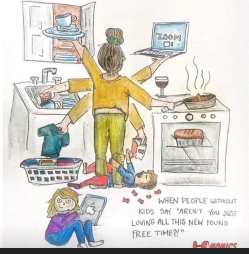 I’m not trying to work from home like many women are right now, but Carrie’s text certainly struck a chord. I feel like I’m only half getting there for much of my life. Career, kids, marriage, and self-health….some people say you can have it all but I certainly haven’t figured out how. Now that the career has come to a grinding halt I suppose I could be the domestic queen, but I’m lacking the motivation.