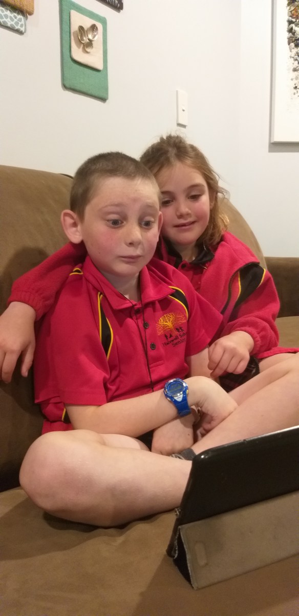 “It takes so long to get dressed!” Milo exclaimed this morning as he stalked into the kitchen. “For two months I’ve been wearing nothing.”