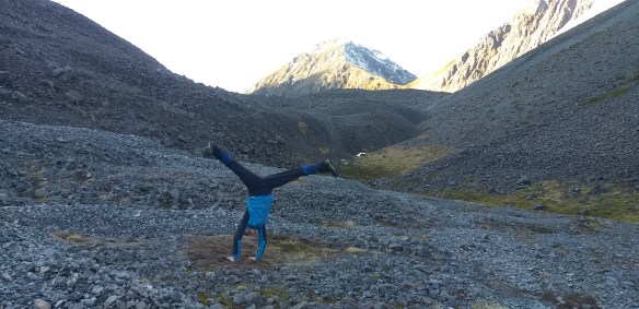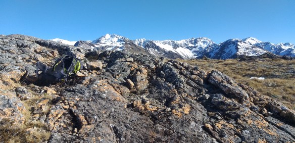 Here’s the Falling Mountain rubble. We chased that warm sun all the way up the valley but never caught it before we decided to turn around and head back towards dinner at the hut.