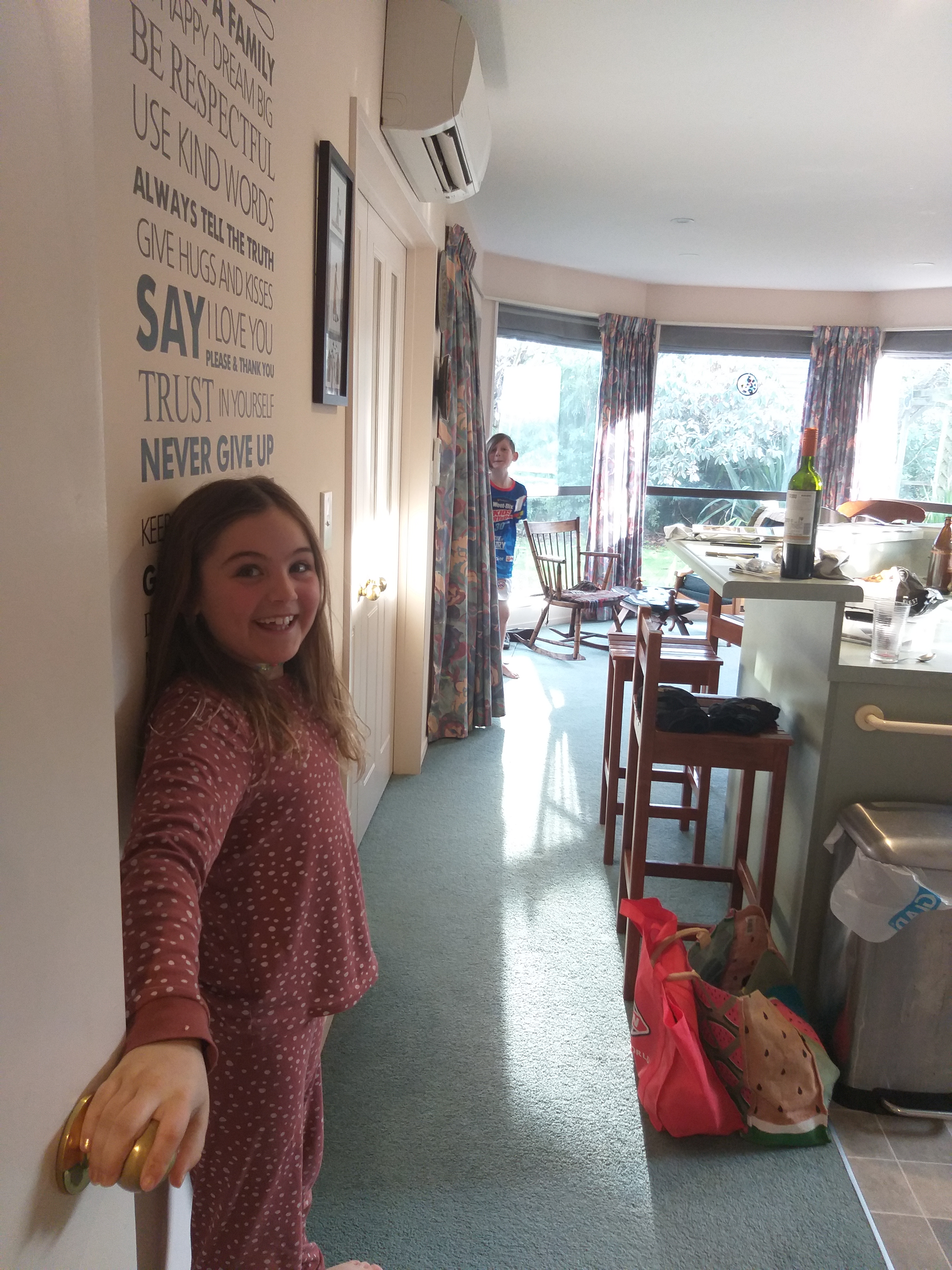 The next morning, back in Christchurch, was the most astonishing development of them all. We all slept in, and when we finally emerged from our rooms we were greeted by a sign on the kitchen door. “Do not come in! Work in process. Go back to bed.”