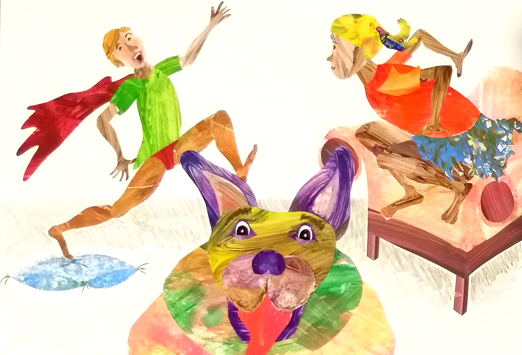 SCWBI put out an illustrator’s prompt during the lock down– “Cooped up.” I decided to make a scene of Milo and Naomi playing “floor’s lava” one afternoon. We don’t have a dog, but I added one just for an extra dose of chaos.