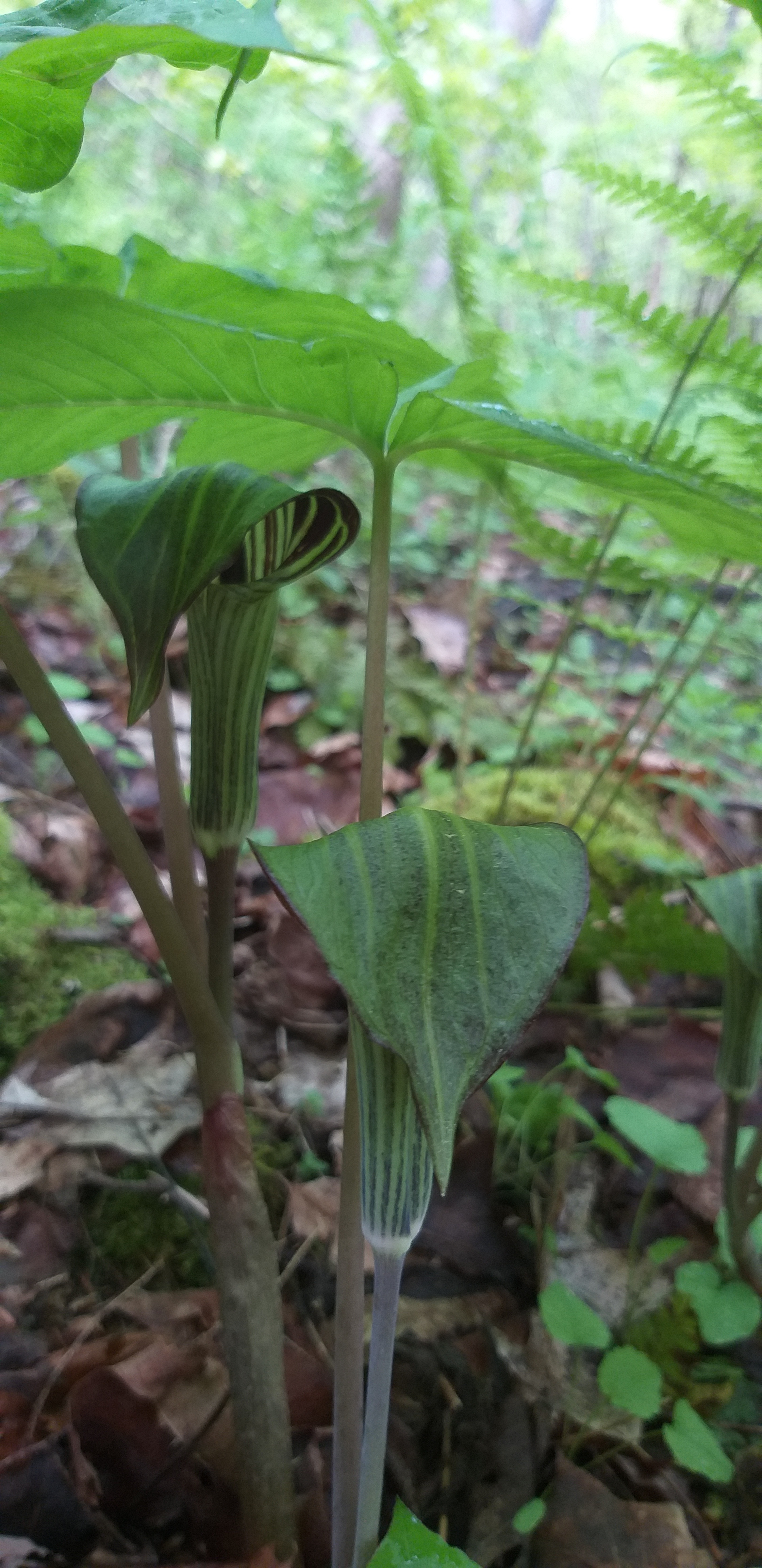 Jack in the Pulpits were blooming just as I remember as kid, hunting them out in the woods behind Mommom’s house and peering beneath their little flap to the preacher inside.