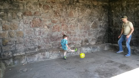 Dam builders in action! The small creek was perfect–low enough that you don’t have to worry at all about the kids, but wet enough for water play. Had the weather been warmer I think we would have spent more time in the creek.