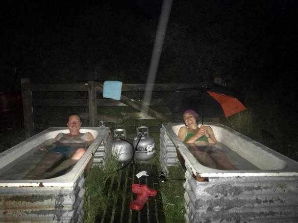 As it was, we spent a bit of time in the hot tubs. It was misting that first night and I don’t like getting my face rained on, so I pulled out the umbrella, much to the amusement of the others. Makes perfect sense to me.