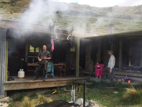 Because the weather was so foggy we spent the first afternoon shooting at a wine box target from the front porch of the bach. Emma and Ian are English, so they haven’t had a lot of experience with firearms; shooting a gun was a real novelty.