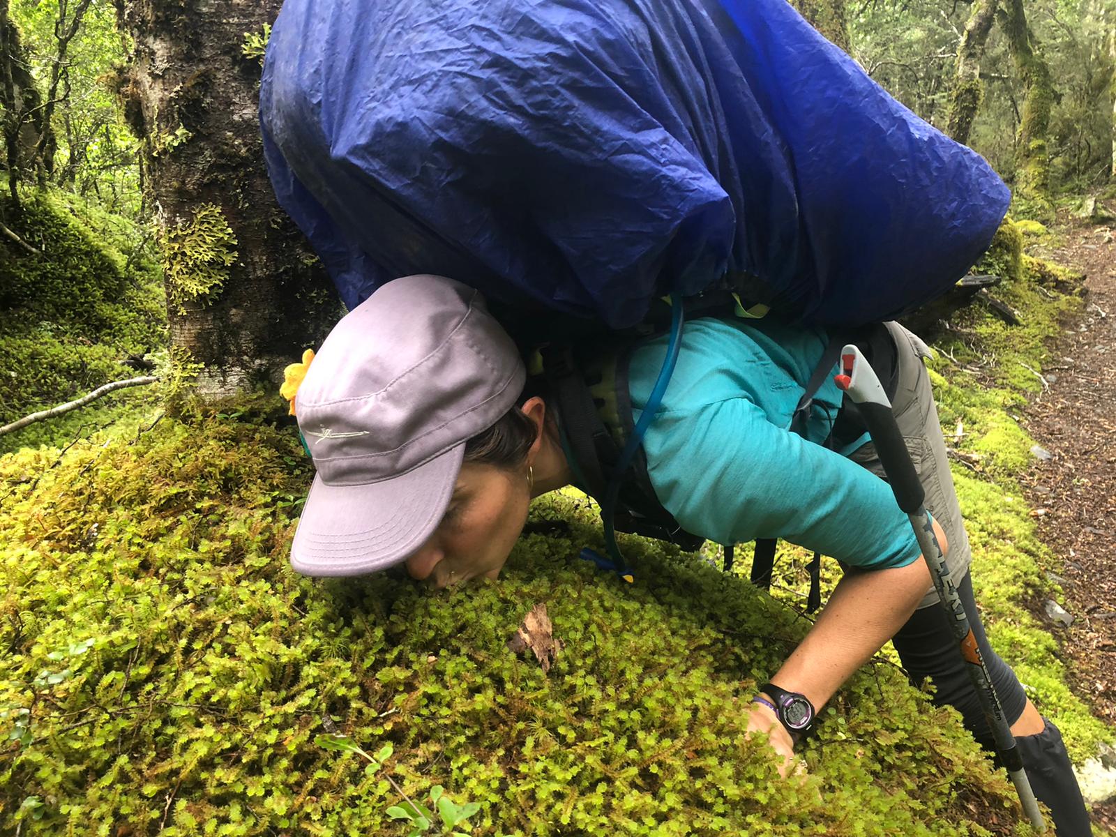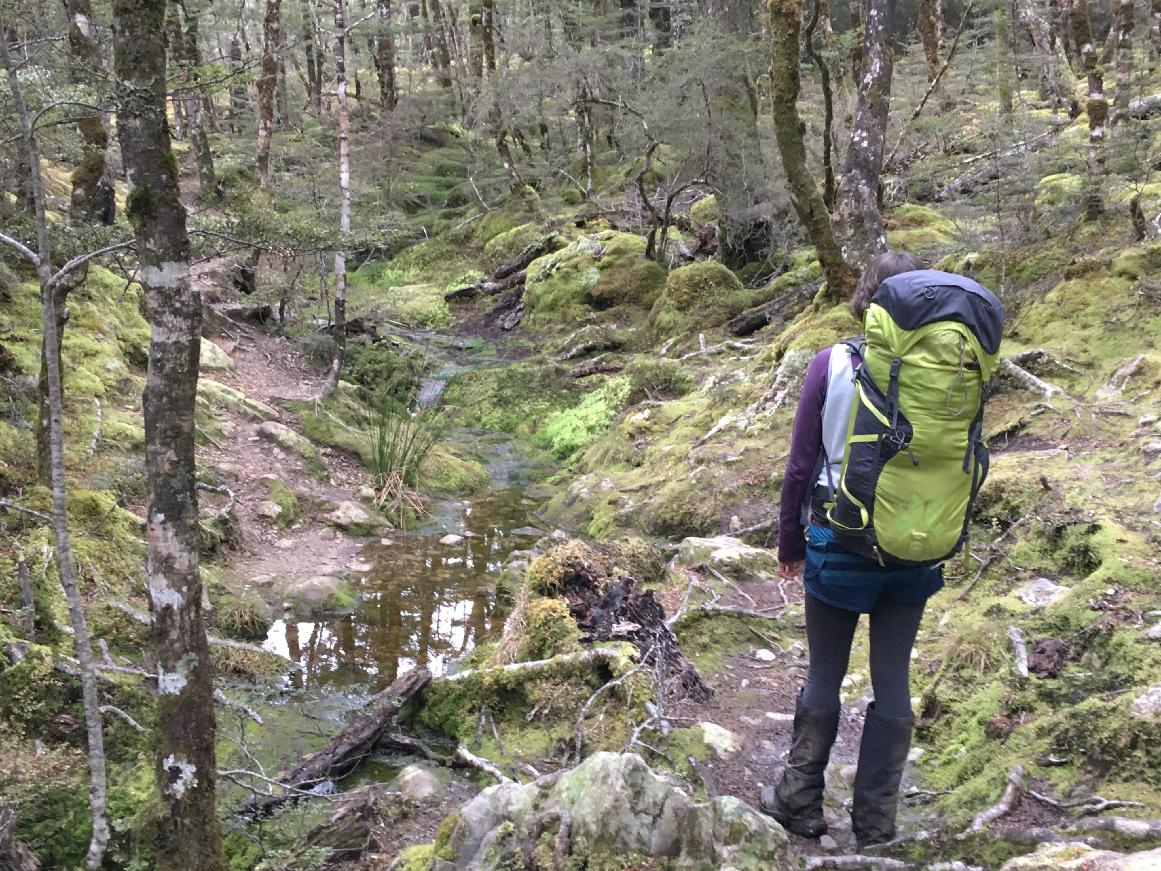 Next morning I started up Mt Aiken. It was windy and chilly in the village, but as I climbed it got still. Odd, but maybe the wind is funnelled over the pass and maybe the trail was sheltered by the mountain to the west? Anyway, I wasn’t complaining. I heard another kea.