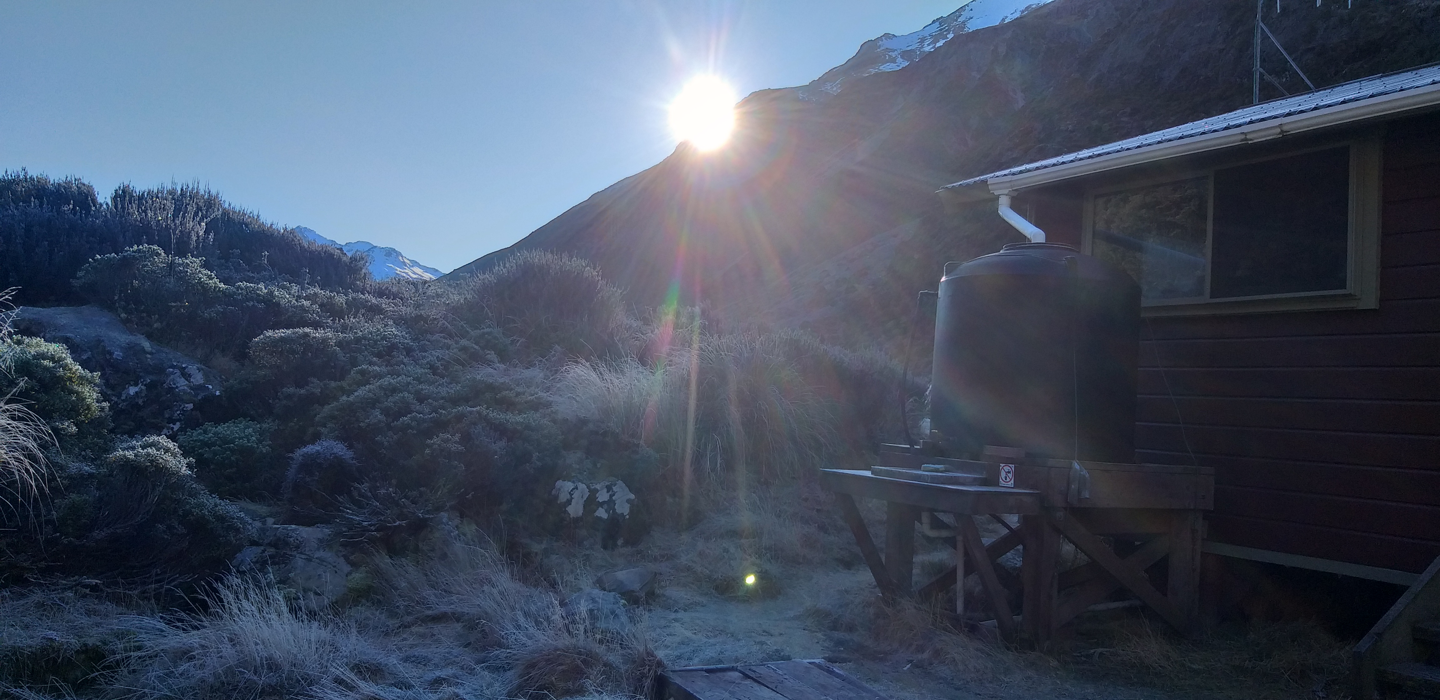 I stayed in the Alpine Club’s lodge Saturday night. “Lodge” makes it sound fancy, but it’s not; more like a rough bach. Passable and cheap.