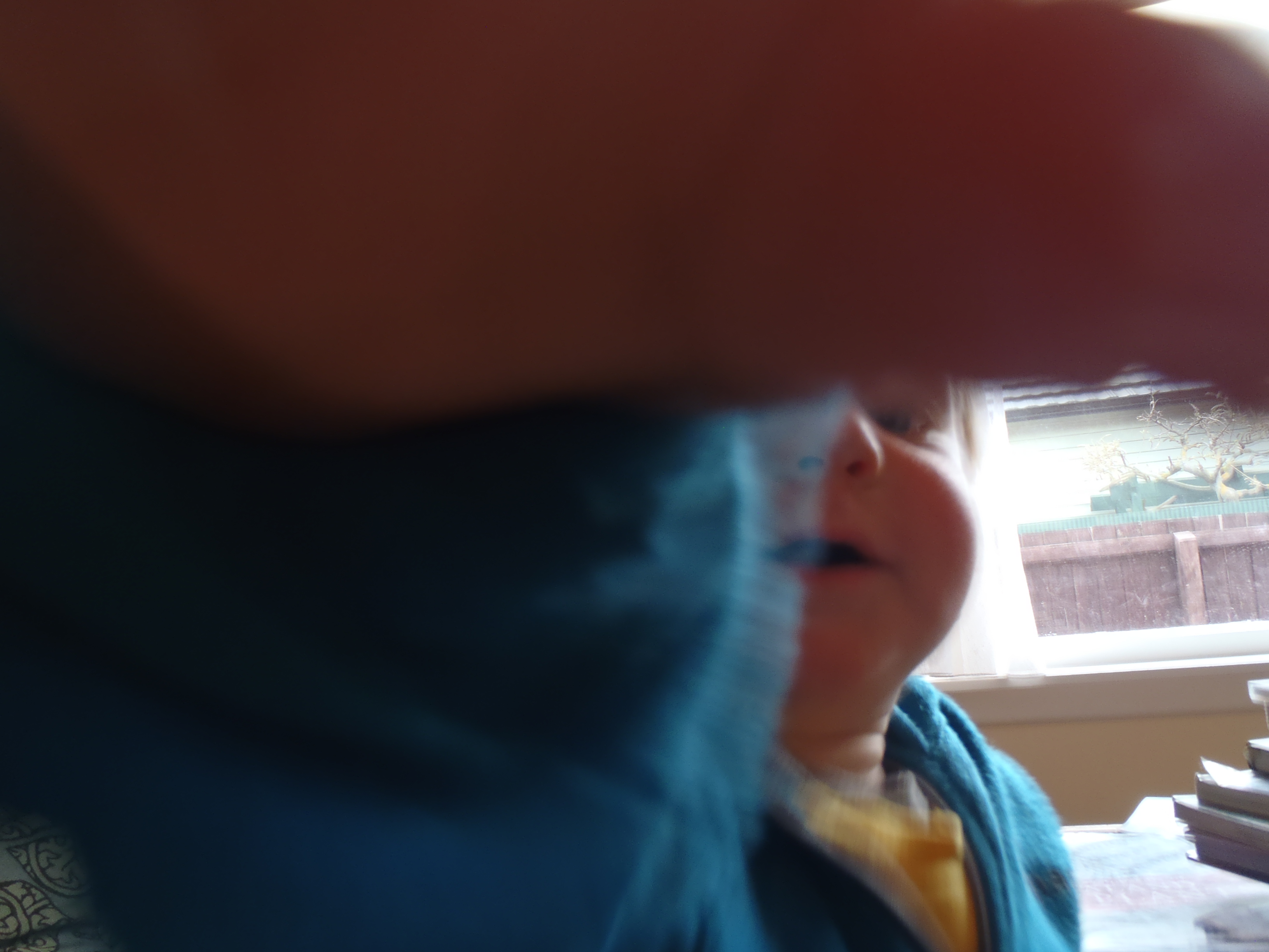 Then I tried taking a picture of myself, but it didn’t come out so well. I actually have TWO eyes, two nostrils, and two chubby cheeks.