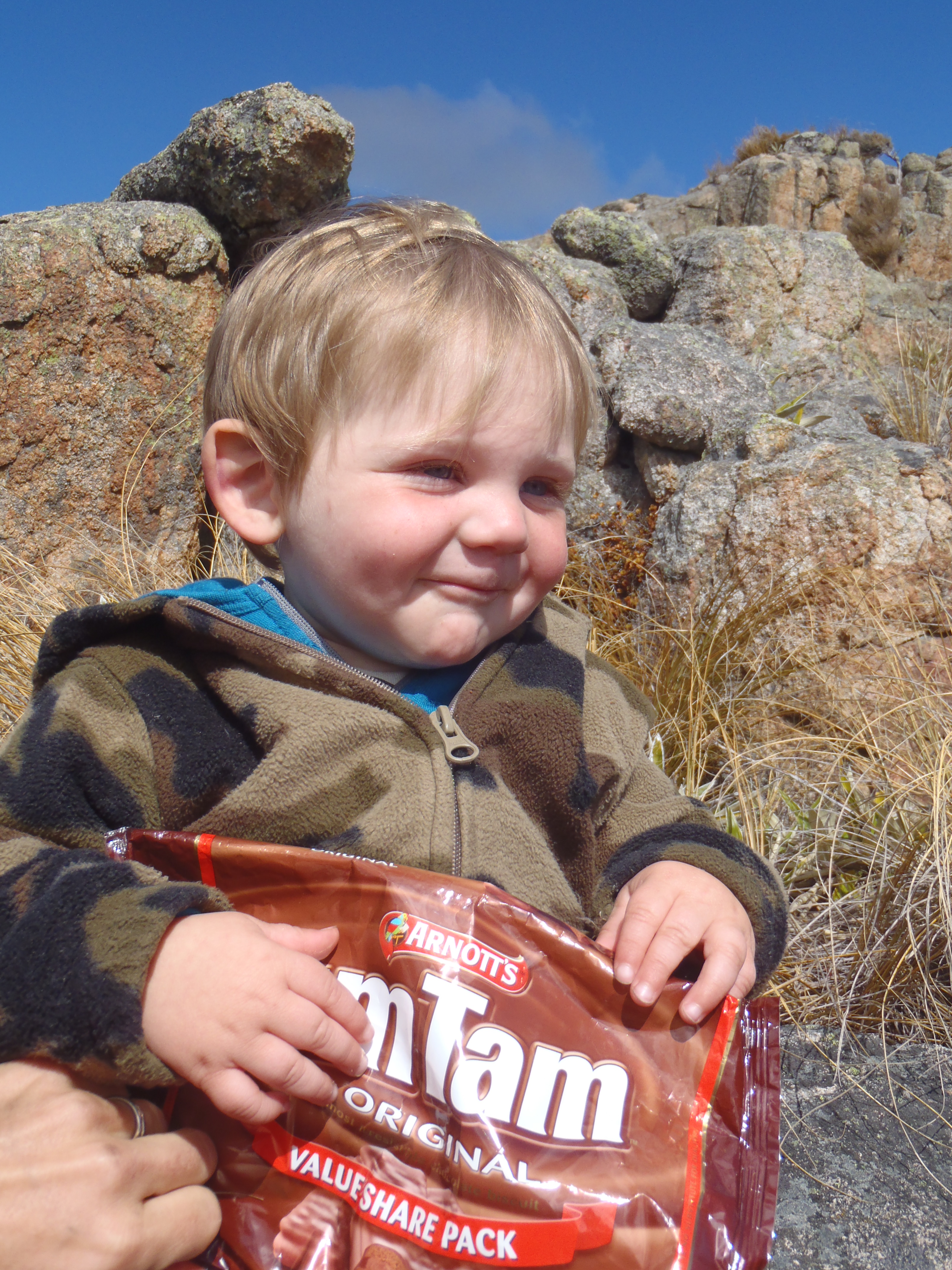When we were hiking Mama got out the cookies but told me I couldn’t have one until I had one last bite of bagel. I cried and pointed and threw a grand wobbly (a fit, in American), and did everything I could think of to tell her that I wanted those cookies, not that silly bagel, but she wouldn’t let me have them. She put them behind her back but I still knew where they were. Crying is a lot of work though, so eventually I gave up and took a drink of water to get refreshed. Since I didn’t see the cookies anymore I guessed that a bagel wasn’t so bad, but as soon as I ate that bite the cookies reappeared, and this time I got one! Yay!