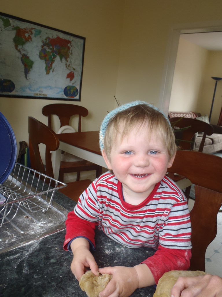 MILO KNEEDING Published November 23, 2012 at 1920 × 2560 in The kids’ world So this is what Mama’s doing up on that counter that I usually can’t quite reach–she’s playing with play dough! I was a great dough smacker and could pound the extra flour right in there. Like Loading...
