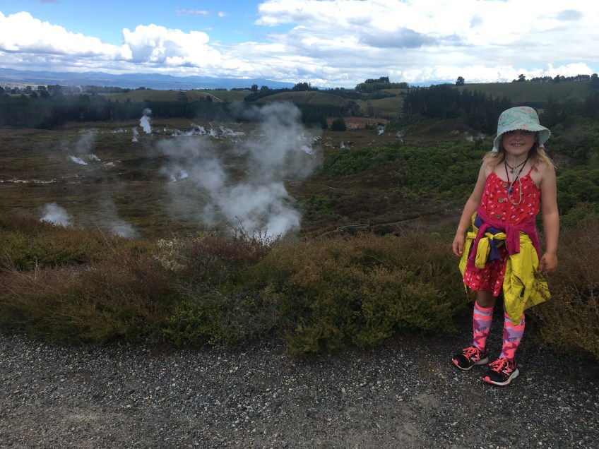 The next day the rain cleared and we paid our tourist fees to walk through the Craters of the Moon. It was well worth it. They had built a wooden walkway over a geothermal hot spot with boiling mud and many steam vents, and they did a great job with the interpretive signs talking about the plants that could grow with hot roots, and the heavy metals that make the soil turn rainbow colours.